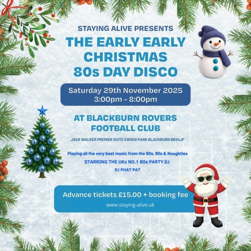 Join us at Blackburn Rovers Football Club in the Jack Walker Premier Suite at Ewood Park, Nuttall Street, Blackburn, BB2 4JF for an afternoon of feel-good music, dancing and festive cheer. Expect great vibes, classic anthems and a touch of Christmas sparkle as DJ Phat Pat spins all the hits you know and love.